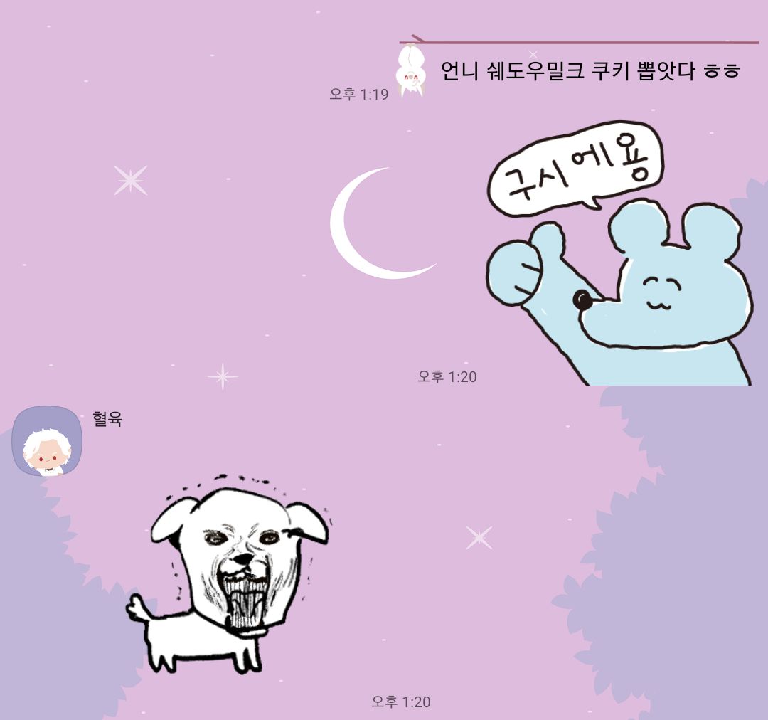 이건 쉐밀 쿠키 뽑고 동생에게 비틱질한 상황